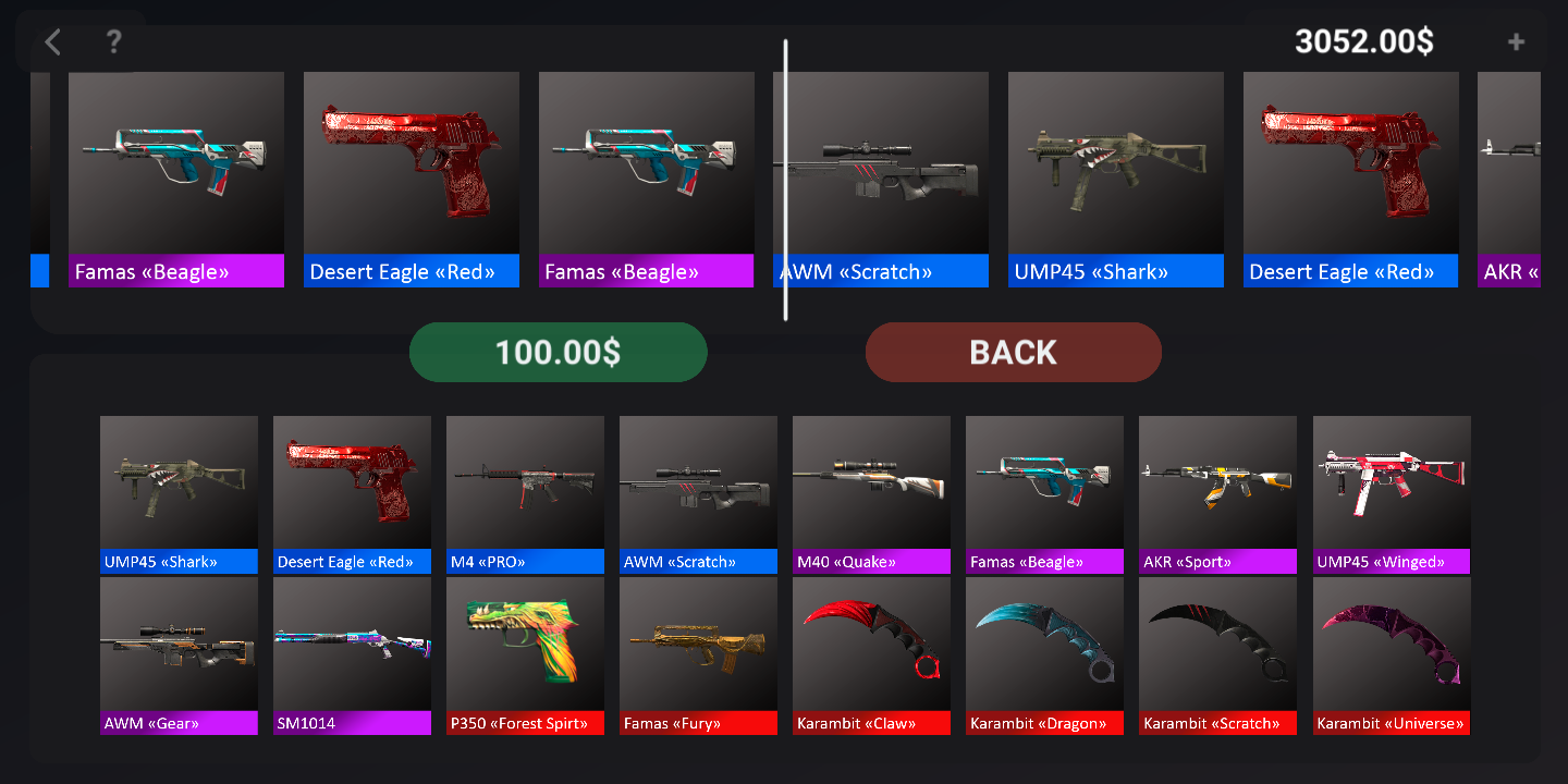 Note: This is a simulator, so no skin can appear in your original game. We made this app for fun just to spin the cases with your favorite game Standoff 2. Good luck!