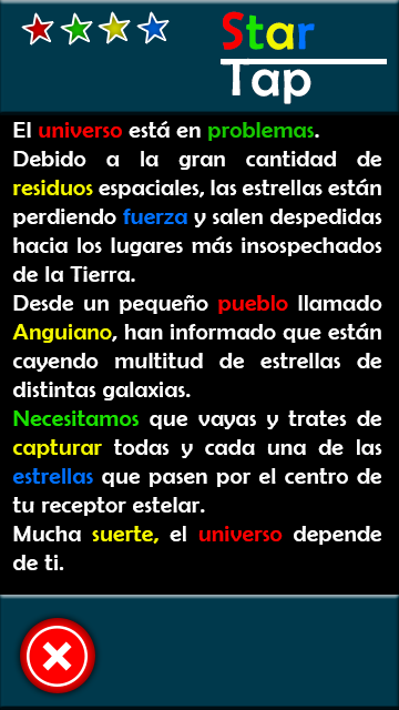 Necesitamos que vayas y trates de capturar todas y cada una de las estrellas que pasen por el centro de tu receptor estelar.