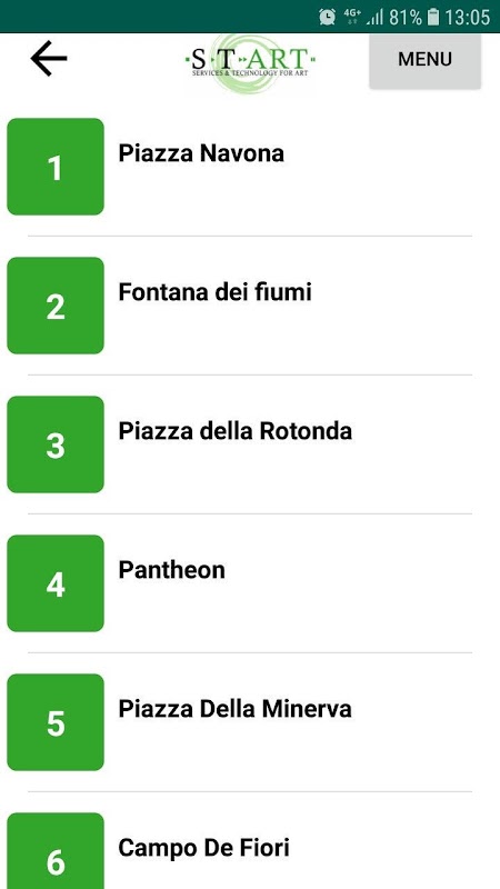 accès aux commentaires via une liste, un clavier numérique ou la carte du lieu de visite.