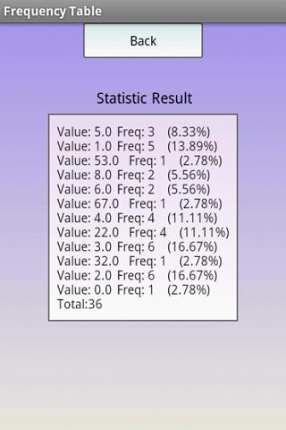 - Table de fréquence: Vous êtes en mesure de créer un tableau de fréquences pour une liste de numéros. Il suffit d'entrer les numéros, séparés par une virgule.