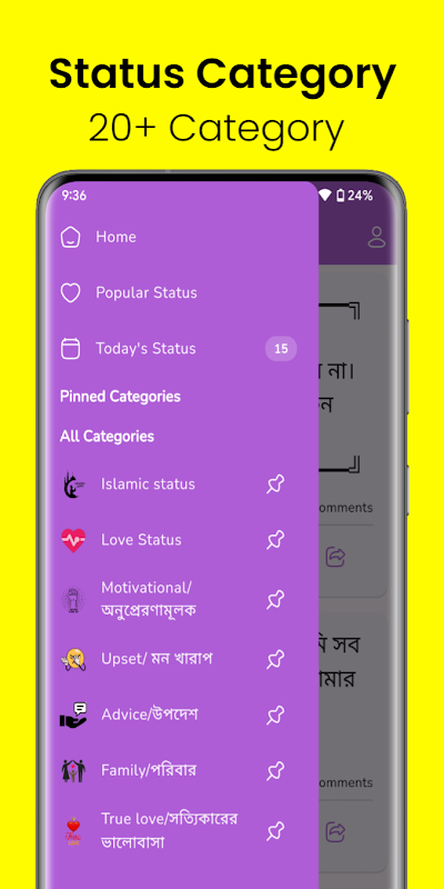 ★ La plus grande collection en bengali : Plus de 20 000 statuts répartis dans plus de 30 catégories.
