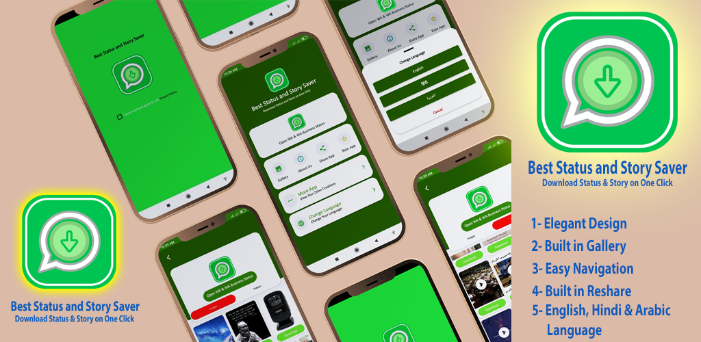 The first version of Status and Story Saver has been launched in three languages English, Arabic and Hindi.