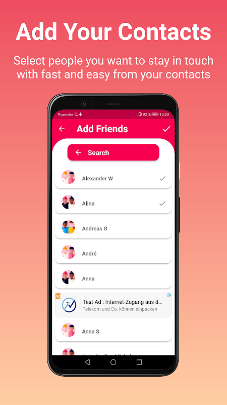 Ajoutez rapidement et facilement les amis avec lesquels vous voulez rester en contact à partir de la liste de contacts de votre téléphone.
