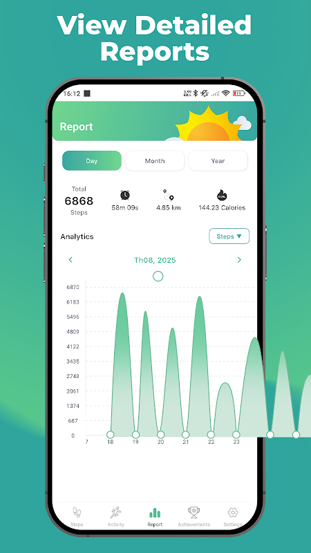 Rapport et réinitialisation : Mettez en pause, reprenez ou réinitialisez vos pas à tout moment, grâce à des rapports quotidiens, hebdomadaires et mensuels détaillés.