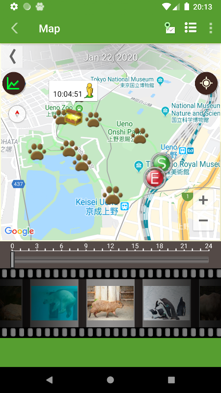 Si les informations de localisation sont acquises par GPS, des "empreintes" seront affichées. Si les informations de localisation sont acquises uniquement par le réseau, "pin" sera affiché.