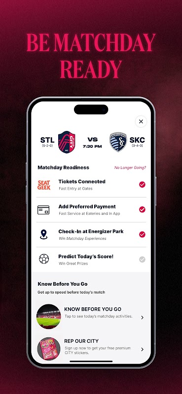 Votre clé pour CITY commence ici. L'application officielle St. Louis CITY SC met CITY à portée de main, offrant un accès exclusif au club et une connectivité complète à Energizer Park.