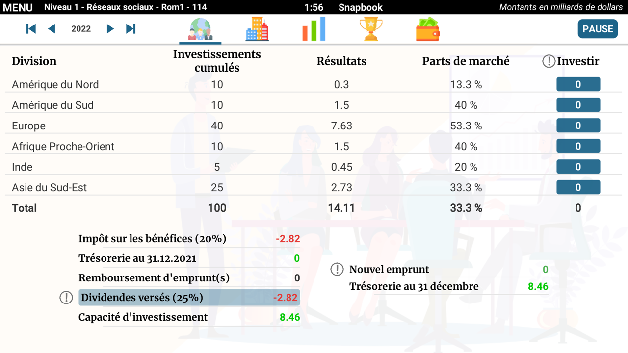 . Jouez à Strathena et dirigez le conseil d’administration d’une entreprise qui a investi dans plusieurs lignes de produits ou sur plusieurs territoires. Prenez les décisions stratégiques annuelles qui engagent l’évolution de votre entreprise sur le moyen et le long terme.