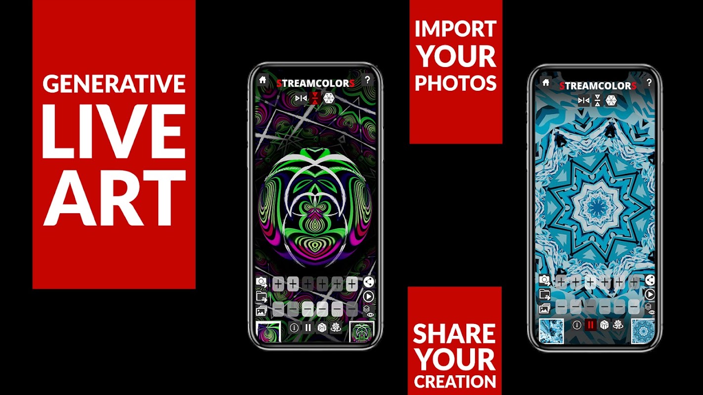 Téléchargez l'application Streamcolors pour créer, acheter et partager des motifs uniques d'art génératif à partir de photos.