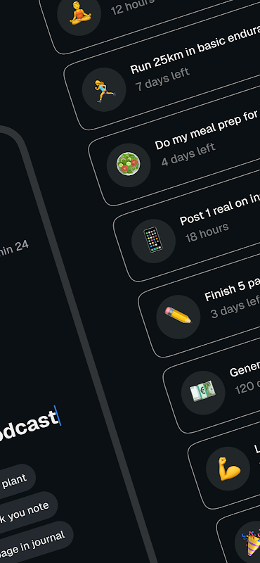 Flashs et Objectifs : Créez des Flashs pour des objectifs à atteindre en moins de 24 heures, ou des Objectifs pour des projets à plus long terme avec des échéances personnalisables. Décomposez vos grands objectifs en étapes pour un chemin clair vers la réussite.