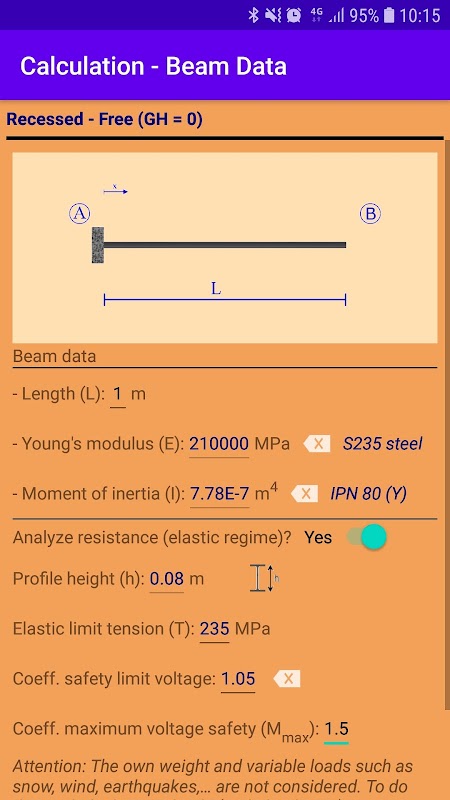 - Il permet la vérification du régime élastique en indiquant s'il entre en rupture ou en plasticité ou l'indice d'utilisation de la poutre dans ces conditions.