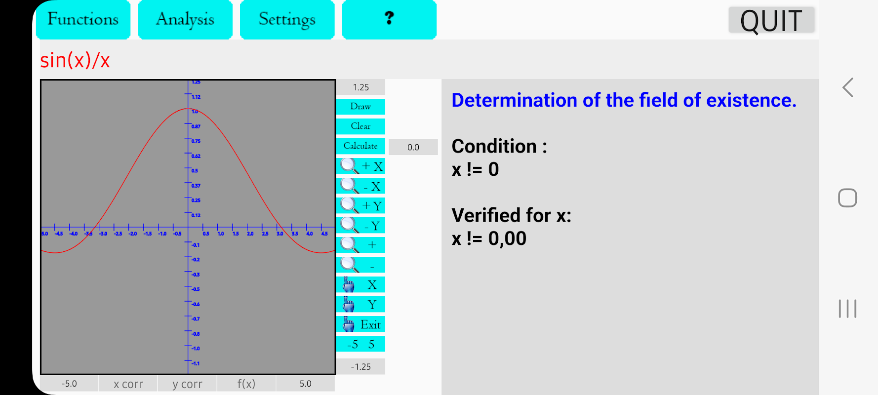 Pour insérer de nouvelles fonctions (les fonctions disponibles sont dans la rubrique Aide ?), Depuis le menu Fonctions sélectionnez Insérer une fonction, insérez la fonction dans la case au-dessus du graphique, lorsque vous cliquerez sur "retour" la fonction sera validée. Si vous voyez la fonction avec ses dérivées sur le tableau noir de droite, vous avez entré la fonction correctement, sinon vous verrez un message d'erreur.