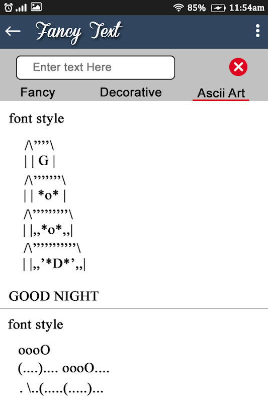 Featuring 50+ fancy font styles, this fancy text writing app is surely going to make your chat conversations look more beautiful. Stylish & Fancy Text Generator is very simple & easy to use with add-on features of adding stickers, decorative patterns & ASCII art designs to stylish fonts.