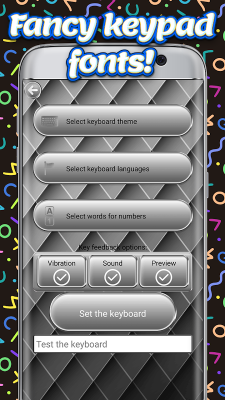 C'est le bon moment pour essayer la meilleure application gratuite avec des thèmes de clavier personnalisés et des images de fond d'écran qui amélioreront la beauté de votre appareil! Sélectionnez la langue désirée et définissez la taille et la couleur des "polices du clavier". Découvrez de nombreux «symboles de clavier» que nous avons préparés pour vous et embellissez vos SMS. Il ya aussi une option autocorrect qui ne vous laissera jamais orthographier quelque chose de mal.