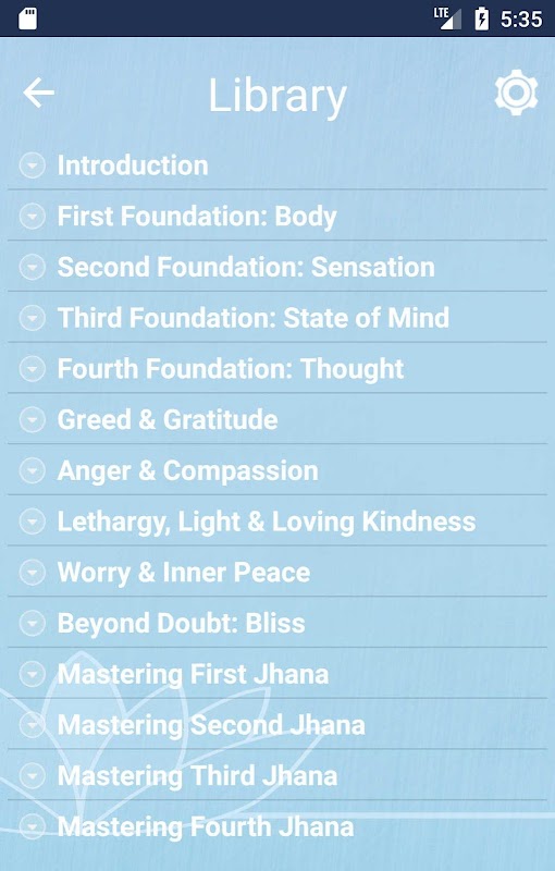 Ensuite, l'application vous aide à supprimer et à surmonter les cinq obstacles qui entravent votre plaisir de la vie quotidienne, la création d'un état de respecter la paix intérieure, d'où l'on construit l'extase transcendante, le plaisir et le bonheur de première Jhana.