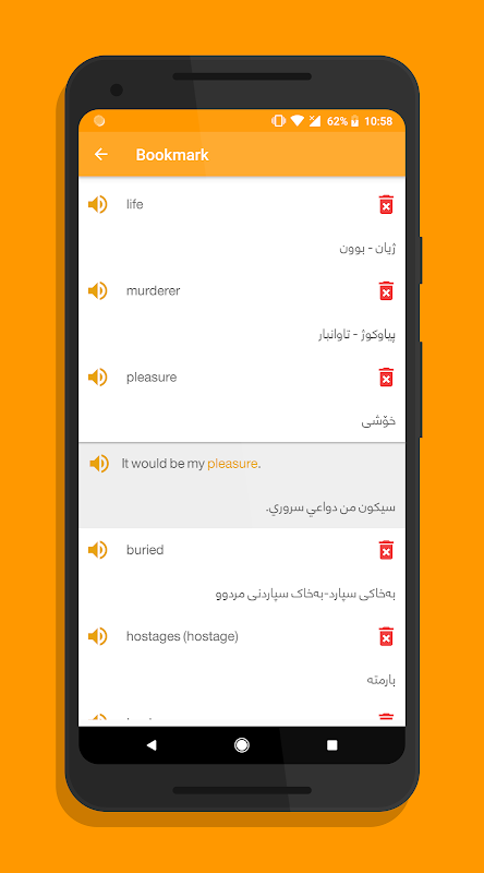 وە بەشێکیتر لەناو ئەم پلەیەرەداهەیە بۆ هەڵگرتنی ئەو وشانەی کە نایان زانیت بۆ ئەوەی دواتر بەسەریاندا بچیتەوە لەبەریان بکەیت, وە لەهەمان کاتیشدا دەتوانیت گوێبیستی دەنگی وشەکە ببیت.