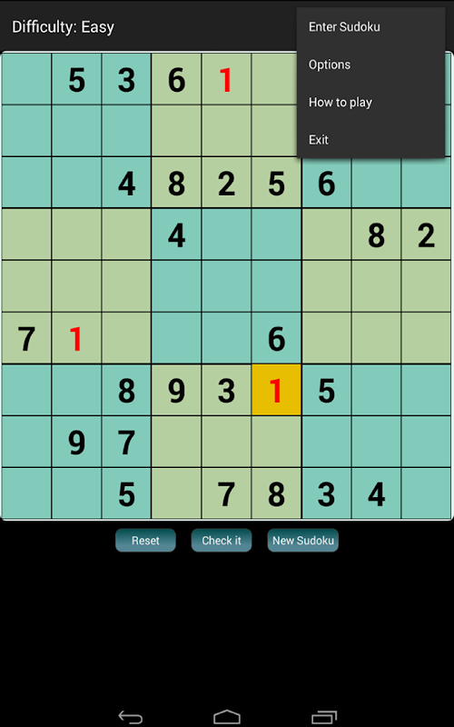 - Mise en surbrillance d'une cellule si vous insérez un chiffre erroné (par rapport à la solution ou aux règles du Sudoku) ;