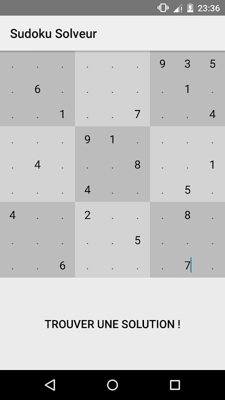 Rentrer juste les chiffres déjà connus et l'application trouve toute seule et AUTOMATIQUEMENT une solution au Sudoku !