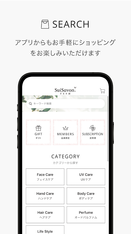 L'application "SuiSavon -Shuri Soap-" peut être utilisée comme carte de membre, ainsi que comme dernières nouvelles et achats sur la boutique en ligne.