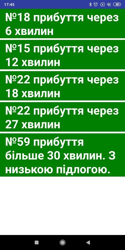 2)якщо телефон вимикався або додаток було згорнуто, для того, щоб продовжити відстеження, потрібно буде знов повернутись на екран вибору зупинок, та обрати потрібну зупинку