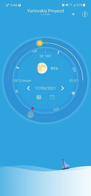 Vous pouvez voir la position du soleil et de la lune et une boussole