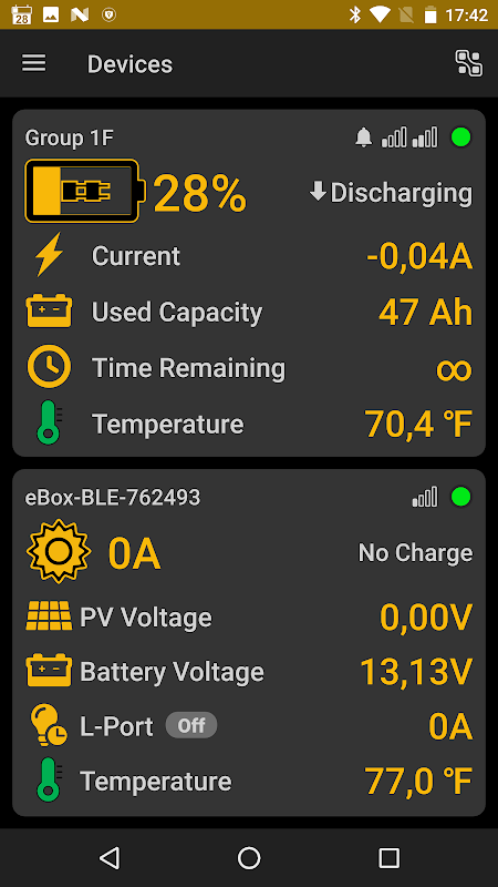 Application pour afficher l'état des appareils SUNBEAMsystem: SMART LITHIUM, MoonRay