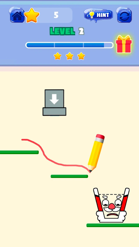 Physics Draw Lines est un jeu de passe-temps idéal, car chaque puzzle peut être résolu de nombreuses manières créatives. Le verre est triste parce qu'il est vide. Votre tâche consiste à tracer une ligne pour remplir le verre de liquide et le rendre joyeux. Tracez des lignes ultra-nettes pour terminer les niveaux. Votre sagesse et votre imagination seront nécessaires.