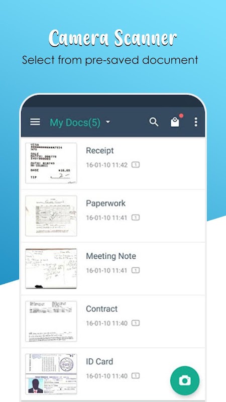 un nouveau scanner de documents avancé pour Android pour garder tous vos documents sous forme numérique dans votre poche. utilisez l'application de numérisation pdf pour convertir votre papier, vos cartes, vos planches et toute information écrite en un document pdf numérique.
