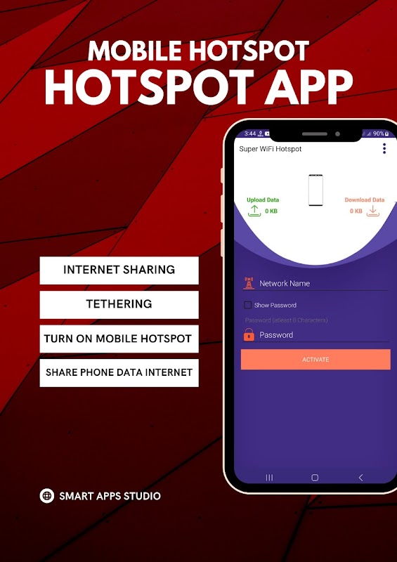 Allumez votre Internet mobile en point d'accès wifi / point d'accès wifi / gestionnaire wifi. Le partage Internet et l'informatique mobile se font désormais facilement et confortablement. Profitez de la connexion Internet Wi-Fi et du partage Internet avec l'application gratuite et mobile du routeur wifi mobile. Facile à utiliser. Pas besoin d'activer le réglage. Juste un onglet pour partager votre Internet avec vos amis. Étendez votre connexion internet wifi gratuite à nos amis. Partagez votre wifi avec mot de passe qui mène à la sécurité. Protégez votre réseau de l'utilisateur non authentifié.