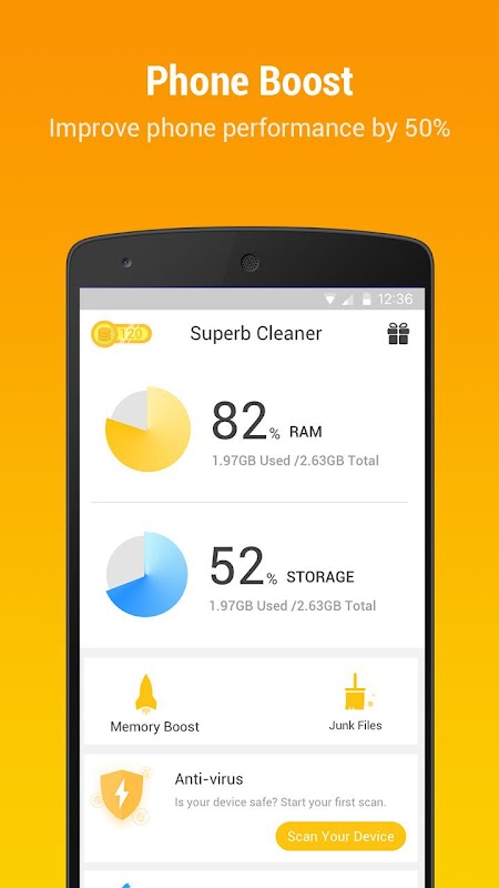 By cleaning unnecessary background apps and process, the memory booster of Super B cleaner can free up memory, make Android phone to run faster, and save much more battery power. With accessibility, this accelerator can prevent apps from auto restart and therefore provide durable boost effect to make phone faster. No more slow phone.