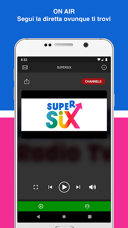 SUPERSIX est un réseau de télévision italien visible sur un circuit de diffuseurs connectés, il est également possible de suivre SuperSix également en ligne en streaming et via notre application Smartphone.