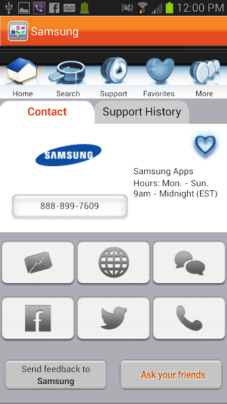 Log in with Facebook, tap to call support and view history; all from your Smartphone. Rate customer service, save favorites for easy access and send questions to companies, friends & family or social networks.