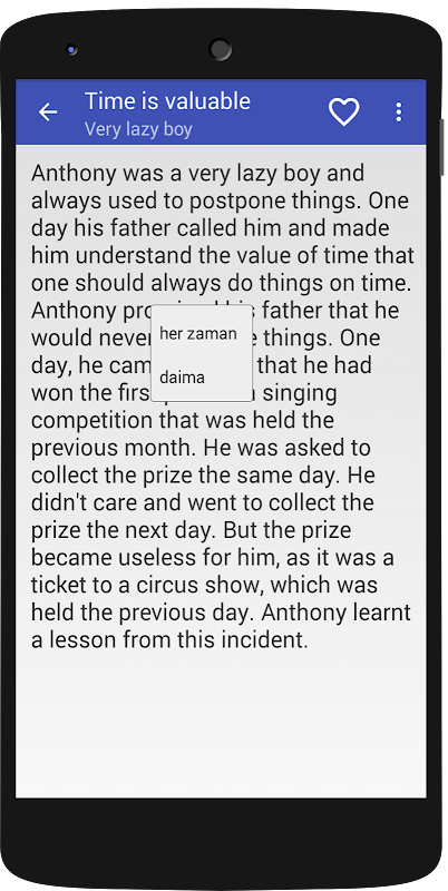 • Suppread ile birbirinden zevkli ve zengin kelime içerikli hikayeleri okurken aynı zamanda takıldığın kelimelerin anlamlarını da kısa bir basılı tutma işlemiyle öğreneceksin, üstelik internete bağlı olmasan bile! Sen bu hikayeleri okurken kelimeleri nasıl öğrendiğinin farkına bile varamayacaksın