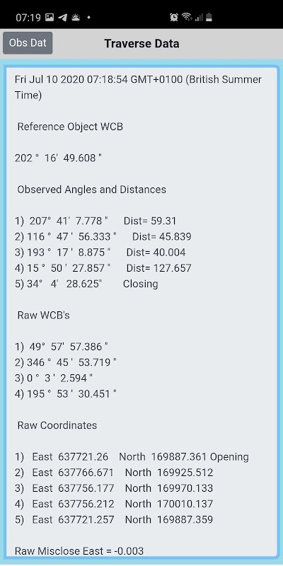 La conception principale de cette application est pour les géomètres techniques sur site de calculer les données de trajectoire à partir d'angles et de distances réservés à la main qui peuvent être calculés rapidement et avec précision dans les coordonnées finales de la station. Les unités d'entrée pour les angles sont: Degrés, Minutes et Secondes, tout comme la sortie des données calculées. Les données de coordonnées sont entrées en tant qu'Est (Royaume-Uni) et ordonnées, tout comme la sortie des données de coordonnées. L'application calcule les données à la fois pour une traversée ouverte simple ou pour des traversées fermées plus compliquées.