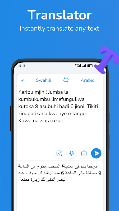 - Traduction ultra-rapide : obtenez des traductions instantanées, même de paragraphes complexes, du swahili vers l'arabe et de l'arabe vers le swahili