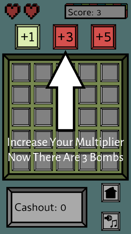 Choose your multiplier, tap tiles, don't hit a bomb, CASHOUT!