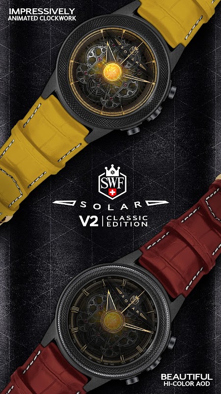 Les cadrans de montres suisses SWF sont conçus et fabriqués en Suisse et présentent un très haut niveau de détails. Le SWF Solar V2 contient un beau mouvement d'horlogerie animé et un cadran AOD de haute couleur pour votre montre, de sorte que vous pouvez toujours laisser votre montre allumée pendant que vous êtes en déplacement.