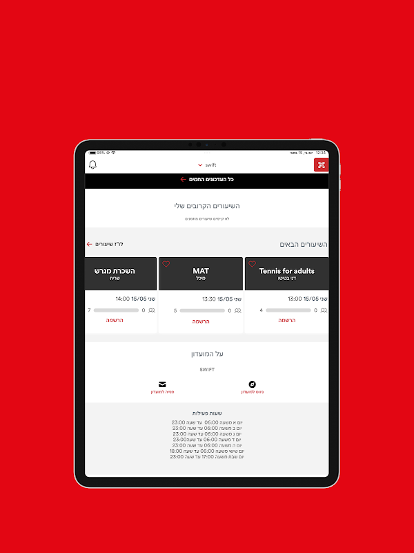 Inscrivez-vous pour les classes (spinning, un studio de Pilates, cours ...), le calendrier de formation des rappels, état de l'abonnement, demander un gel sur abonnement, l'écriture demande directe au club, l'affichage d'un club de leçons, des guides de vernissage, la navigation club, présentant des promotions spéciales offertes aux clients messages le club concernant les modifications du système et des événements et bien plus encore ...