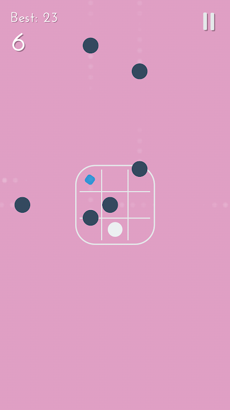 Swipe the dot with you finger to avoid getting hit by the black balls that are all over the place, get the rotating blue squares and get the High Score.