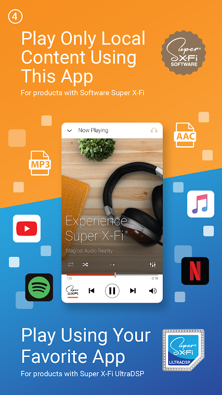 S'appuyant sur une technologie de précision de pointe qui cartographie l'acoustique distincte d'un système audio projetant le son à l'oreille humaine dans un espace tridimensionnel, l'application SXFI utilise la technologie Super X-Fi pour offrir une expérience audio holographique qui traduit intelligemment cette information complexe en une expérience d’écoute époustouflante identique pour les écouteurs.
