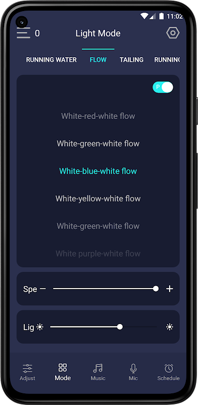 2. Réglez le mode de la lumière.
