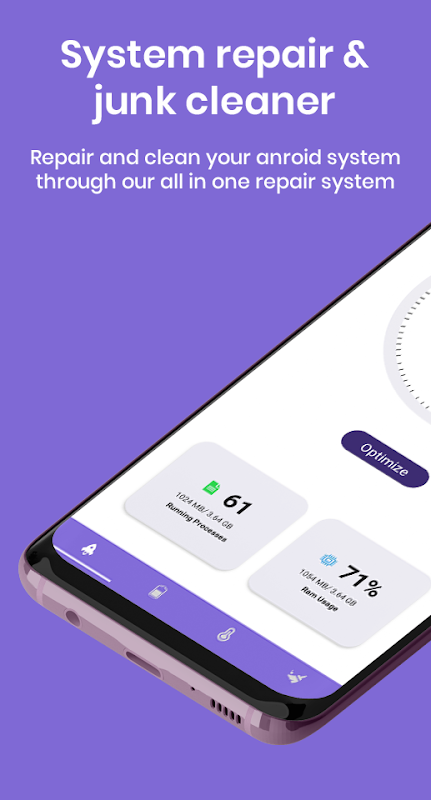 Repair and clean your android system through our all in one Repair System (Fix Android Problems, Speed Booster) app. Optimize your device performance and boost your smart device via this amazing Repair Android System app. Repair your android system and speed up your device with a smooth flow. It is also clean your junk files, optimize battery with a running process or also boost RAM.