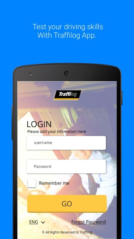 Note: "La fonctionnalité de cette application nécessite que le véhicule que vous conduisez est équipé d'une unité Traffilog et affichera uniquement les voyages où vous avez été signé dans le véhicule."