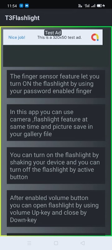And also turn on the Flashlight by using Various way( Button click , by using your natural voice , by using phone finger enabled sensor , by clapping , by Shake ) and also you can turn on the flashlight with camera both at same time. So T3 Flashlight has miple feature wiith simple user interface.T3Flashlight