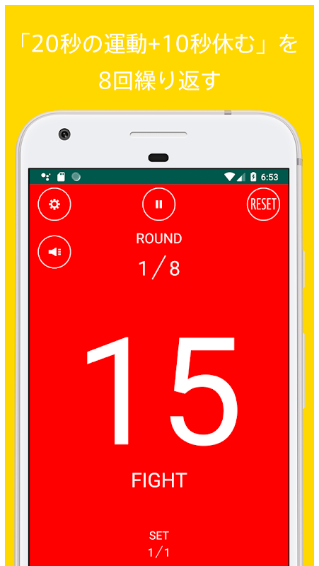 このアプリで(20秒運動+10秒休む)× 8回 = 4分 という時間を正確に把握することができます。
