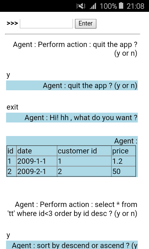 1. Instead of using traditional graphical form input, this app using a user-friendly dialogue interface to help you process various table operations.