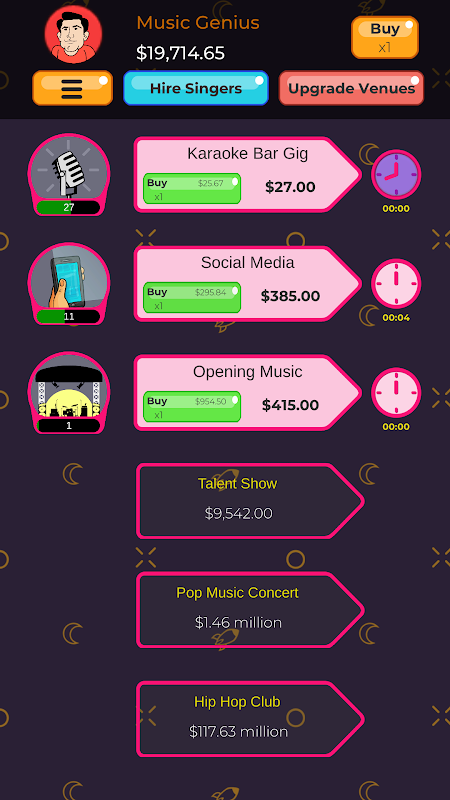 Clicker de musique inactif pour les magnats de la musique