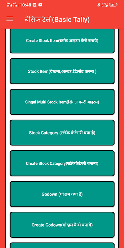 cette application comprend également les matériaux E-BooK de tally TPS (taxe sur les produits et services) en hindi.