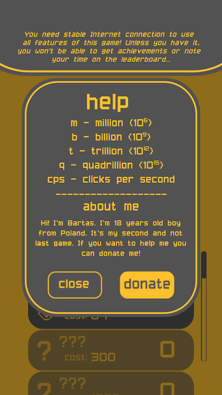 You have to tap the screen to earn Clicks! It will allow you to buy upgrades (12 available, each one has 100 levels of improvements) and earn extra Clicks every second!Time is important!