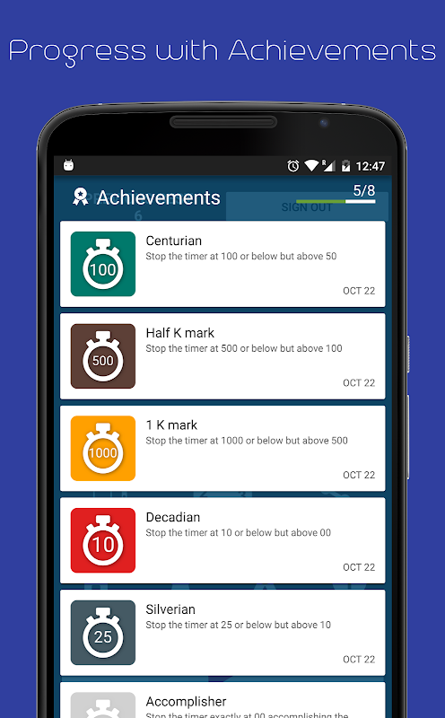 The objective if the addicting & challenging game is to stop the timer before it runs out. Stop the timer at 00 (the very nick of time) to claim the first place in the leader board*. You can also stop the timer at various times and will be rewarded accordingly. If you fail to stop the timer before 00, It resets itself to the starting time. Stop it at 00 or anywhere near zero to move up the leader board.