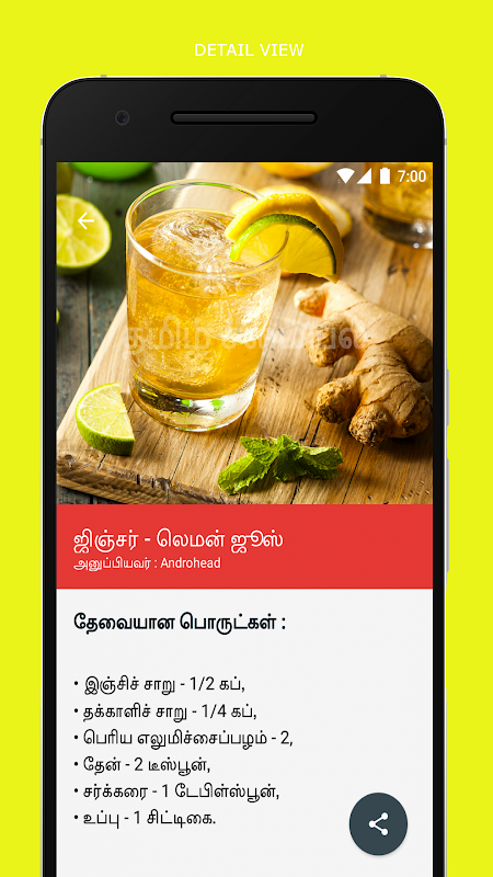 - Share Tamil/Indian Samayal Kurippu (Recipes) you like to friends via One Click to Whatsapp/Email/Messaging and your friends can directly open in our app